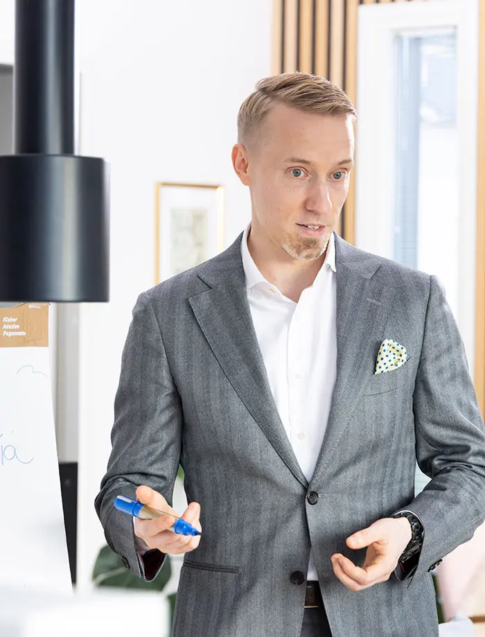 ”Lupaukseni jokaiseen asiakaskohtaamiseen on saada asiakkaan ajatukset, suunta ja arki selkeämmäksi kuin mitä ne olivat ennen tapaamistamme. Selkeyden kautta kääntyy lamaannus aktiiviseksi toimijuudeksi ja epävarmuus rohkeudeksi. Näitä tarvitaan johtamisessa erityisesti nyt haastavien aikojen keskellä.”